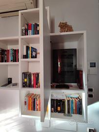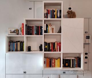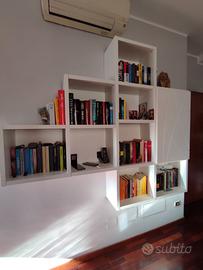 Vendo causa trasloco libreria sospesa Mobil Gam in laccato bianco con porta incisa a occultare quadro elettrico.