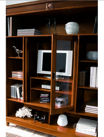 Libreria Stile Inglese - Vittoriano in legno massello con vano multimediale (porta tv/stampanti) e vetrina ad ante scorrevoli con chiusura a chiave.