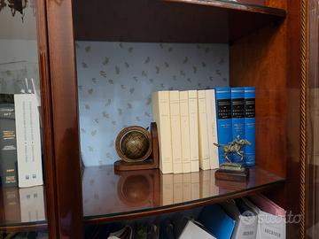 Grande libreria classica per studi professionali o uffici, di circa 2.30 di altezza x 2.20 di larghezza, rigorosamente in legno massello, con vetri molati, cardini e serrature nascosti nell'anta, mensole in legno con ripiani in vetro temperato. Utilizzabile anche come vetrina o cristalliera in un salotto. Ritiro agevole (il modulo superiore con le 4 ante in vetro poggia su quello inferiore, quindi sono facilmente trasportabili, pur essendo pezzi solidi) a carico dell'acquirente ad un primo piano in zona Vomero a Napoli.
