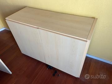 Mobili studio: libreria Giessegi con ante in basso 203x32x228h, armadio 53x32x195, mobiletto con 2 ante 103x29x88.