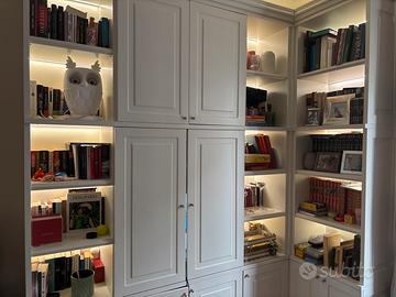 Realizzata su misura da falegname brianzolo questa libreria di pregiata fatrura in stile barocco è soaziosa e decorsitva . Dispone di illuminaziione al led integrata. Sono presenti solo alcuni piccoli segni di usura