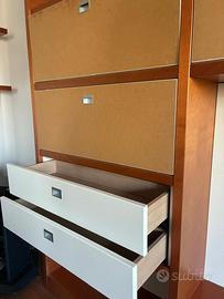 Libreria moderna in ciliegio, funzionale adattabile a qualsiasi tipo di arredamento. Nelle antine è stato rimosso il Profilato bianco
