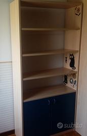 Libreria aperta e chiusa, in perfette condizioni. Dim. 95x35x200h, colore frassino /blu. Ritiro in Udine, no spedizioni. No sconti, no perditempo. Euro 70,00