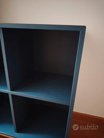 Libreria IKEA 4 scomparti colore blu, condizioni ottime. 70x35x70 cm 10 cm di piedini in legno