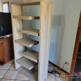 come nuova. Libreria a giorno 90X35X180 modello Bilbao, effetto legno e schienale in vetro di spessore. Mobile pregiata qualità e design , molto robusto ed elegante.Vedi mobilandia emilia per maggiori dettagli È smontabile per facilitare il trasporto.
