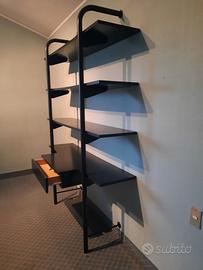 Piccola libreria in legno e ferro con scrivania e cassetto , colore nero misure h. mt 2,10 largh. 1,50 , mensole h. 5,5 cm.