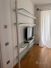Libreria Cristo in ferro e cristallo con mensole regolabili e pressione a soffitto