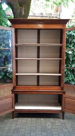 Mobile libreria a 2 corpi, di origine emiliana, in legno di noce.