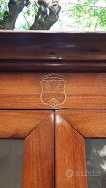 Rara e raffinata vetrina neoclassica dal disegno equilibrato, blasonata nella traversa superiore e firmata in quella inferiore.