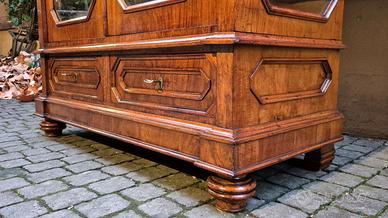 Vetrina emiliana Luigi Filippo, lastronata in noce.