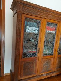 Libreria/Vetrina antica stile Rinascimento 3ante noce massello l 183 p 48 h 184