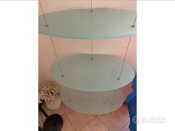 Cattelan originale (no imitazioni) modello NUVOLA , libreria/vetrinetta per esporre libri e oggetti (sostiene un peso elevato), 4 ripiani in cristallo sabbiato stondati, struttura reggi cavi con testa in legno massello color wengé.