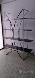 Libreria con struttura in acciaio cromato e qyattro ripiani in vetro nero. Misure L.1400 x P.430 h.1800 mm. Vendo ad € 980,00