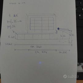 Libreria Malobbia in ciliegio impiallacciato . dettagli di alta qualità, quadro con cornice in MDF verniciato verde , supporto tv con inclinazione regolabile