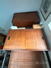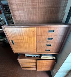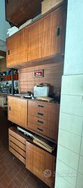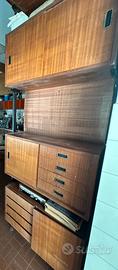 Bellissima libreria a soffitto anni 60/70 con cassetti e pensili capienti. Il frontali o di alcuni cassetti risulta un po’ scrostato.