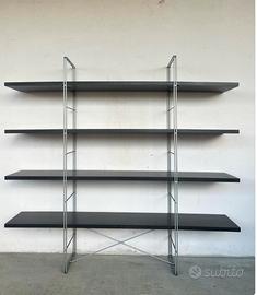 Vendo come da titolo libreria, vintage "Enetri" grigio scuro/nero. Un design iconico di Niels Gammelgaard per Ikea danni 80/90. Robusta struttura in metallo con supporto a croce e gambe regolabili. In ottime condizioni. Quattro ripiani con segni di usura (3 ripiani sono in buone condizioni la prima ha difetti visibili ma se la mettete come prima o ultima non si vedono tanto si potrebbe comunque riverniciare e risolvere ). Può essere utilizzato come divisorio o contro una parete. Larghezza: 170 cm.