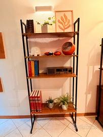 realizzata in teak e metallo nero, con 4 ripiani aperti.