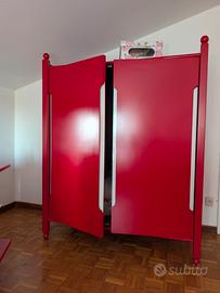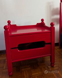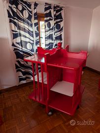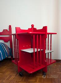 Raffinato mobiletto libreria laccato rosso della serie Cortina prodotto da Ital-Bed nella seconda metà degli anni 60.