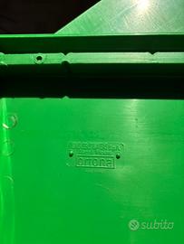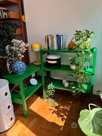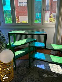 Originale libreria/scaffale modulare modello “Ortona” prodotta da Fainifain S.p.A. (Ascoli Piceno), autentico esempio di design italiano anni ‘70. Realizzata in plastica rigida color verde acceso, la struttura componibile permette diverse configurazioni ed ogni ripiano è staccabile singolarmente. Perfetta per qualunque ambiente anche all’aperto per via del materiale. Un pezzo di modernariato dal forte impatto visivo, perfetto per ambienti contemporanei, retro o spazi creativi. Ideale anche per chi cerca arredi di design iconici e fuori dal comune. Condizioni: Buone condizioni vintage: segni del tempo e lievi graffi superficiali dovuti all’uso, ma struttura integra e stabile. Caratteristiche: * Modello: Ortona * Brand: Fainifain S.p.A. * Produzione: Italia (Ascoli Piceno) * Epoca: anni ‘70 * Materiale: plastica rigida * Colore: verde acceso * Modulare e componibile * Dimensioni: 30 x 81 x 30 (il singolo componente) 30 x 81 x 150 (tutti insieme) libreria vintage design italiano, libreria modulare, mobile design plastica, arredamento retro, libreria verde, design anni 70 Italia, scaffale componibile, verde, pop design, furniture, bookshelf, shelf, home decor. La spedizione è possibile solo per il singolo modulo sennò ritiro a mano a Roma