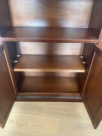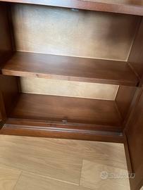 Vendo coppia di librerie in legno dal design classico, robuste e molto capienti. Ogni libreria è composta da ripiani aperti nella parte superiore e da un vano chiuso con ante nella parte inferiore, ideale per libri, documenti, oggetti decorativi o per tenere tutto in ordine. Le condizioni sono buone, con normali segni di utilizzo, ma la struttura è solida e perfettamente funzionale. I ripiani sono regolabili e la libreria si può smontare. Una delle due presenta un difetto in un ripiano della parte bassa, come visibile in foto. Misure: 90 x 190 x 39 cm Profondità ripiani: 31 cm Vendibili singolarmente: •Libreria destra: 90€ •Libreria sinistra: 80€ Ritiro a mano a Cagliari, zona Monte Mixi.