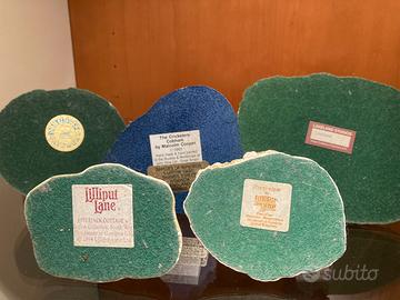Lotto di casette cottage inglesi in miniatura, vintage anni ’80/’90, tutte in ottime condizioni. Presenti i seguenti pezzi: – Lilliput Lane “Applejack Cottage” – Lilliput Lane “River View” – Lakeland Studios “Lakeside” – Penthouse Pavement “Rose Cottage” – “The Cricketers Cobham” by Malcolm Cooper (John Hine Ltd) Oggetti artigianali inglesi, molto curati nei dettagli. Ideali per collezionisti o come elementi decorativi.