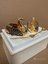 Bellissima zuccheriera o saliera originale Limoges. Vintage in porcellana. Due eleganti cigni e due piccoli cucchiaini formano questo raffinato set.