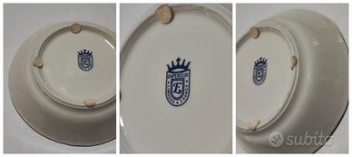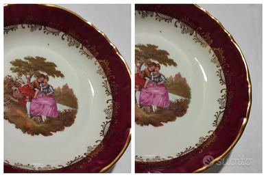 Limoges France piatto decorativo in porcellana con disegno e decorazioni bordeaux e oro.