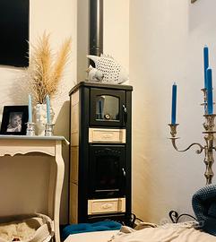 Lincar stufa a legna in ghisa modello Alice, bellissima condizioni ottime usata due stagioni . Mattonellina venata su lato destro ( piccolo difetto estetico )