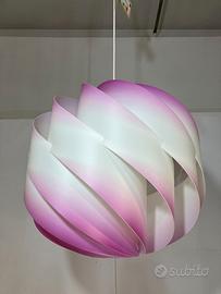 Lampadario in Polilux bianco sfumato viola, materiale leggero facile da pulire che garantisce robustezza, resistenza agli urti, trasparenza, diffusione della luce e non ingiallisce.
