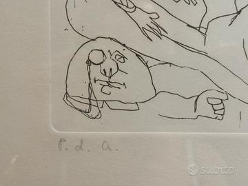Litigrafia di Mino Maccari, con cornice in legno tinto grigio e fondo in specchio. Condizioni ottime Misure 65cm x 50 cm circa