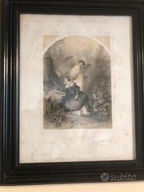 Questo oggetto è una stampa antica incorniciata raffigurante un angelo che sussurra a una donna, identificabile come l'opera "Angel Whispering to an Odalisque" del pittore Mihály von Zichycon cornici bellissime 50x70 in legno scuro con vetro vendo in coppia o anche singolarmente