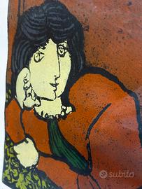 Vendo bellissima litografia originale di Domenico Cantatore, artista italiano di grande rilievo nel panorama del ‘900. ✔️ Opera numerata a mano (136/200) ✔️ Firma autografa in basso ✔️ Soggetto femminile dai colori intensi e molto decorativi Perfetta per arredare casa, studio o attività: è un pezzo che cattura subito l’attenzione. 📐 Dimensioni: Cornice: 82 x 61,5 cm Opera interna: 70 x 50 cm 📌 Buone condizioni generali (normali segni del tempo sulla cornice visibili in foto).