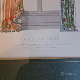 Litografia de "La Garde-Meuble" "Collection de Tentures" Croisée Fantaisie misura 40x50. Cornice dorata con vetro.