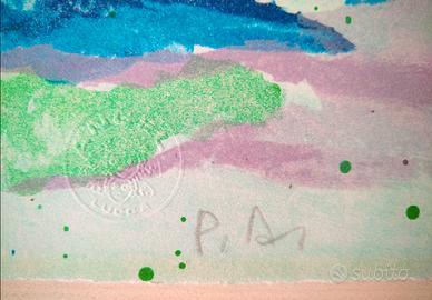 Autentica tecnica del disegno su pietra, in tredici passaggi di colore per la cura di Giuliano Angeli nella storica stamperia di famiglia (una delle migliori d'Italia) a Lucca, come garantisce il timbro a secco in calce.