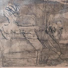 LITOGRAFIA MACCARI PROVA D AUTORE 31 X 24 CON CORNICE 65 X 46