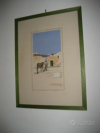 Litografia Originale di Aldo Riso -uomo che trascina un asino, incorniciato e in perfetto stato. Zona San Giovanni, Roma.