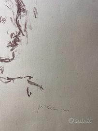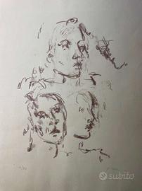 Vendo litografia originale di Osvaldo Piraccini, numerata 15/75, raffigurante tre volti stilizzati, realizzata con il suo caratteristico stile figurativo che richiama la poetica neorealista e informale. L’opera, incorniciata e in buone condizioni, è un esempio del talento di Piraccini, tra i maggiori esponenti della pittura cesenate del secondo dopoguerra. Nato a Cesena nel 1931, l’artista ha segnato la scena artistica con opere dal forte impatto esistenzialista negli anni ’50, evolvendo verso una figurazione sempre più informale negli anni ’60 e ’70, periodo in cui opera anche a Roma.
