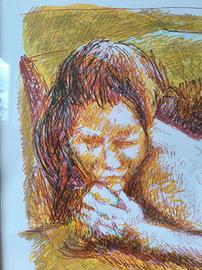 Litografia con cornice di nudo sdraiato autografata originale di Renato Gottuso. Stampa nr. 63 di 75. Misure quadro 84 x 64.5 cm