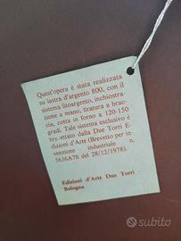 Litografia su lastra in argento 800 inchiostrazione a mano brevetto Edizioni d'Arte Due Torri Bologna raffigurante l'interno del Teatro Farnese di Parma. Fornita montata su tela in una bella cornice in legno con decoro dorato. Sul retro timbro dell'editore e della Oreficieria Zanella Parma. Inclusa garanzia dell'editore come da foto. Misure 10x15 (28x32). Spedizione con TuttoSubito Poste italiane. No consegna a mano.