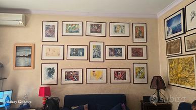 Splendida collezione di litografie della produzione biblica di Marc Chagall. "Dessins pour la Bible" pubblicata tra il 1956 e il 1960 sulla rivista Verve. Fila in alto (da sinistra a destra) • Caino e Abele; • Il Paradiso; • L'Angelo del Giudizio; • Davide e il Leone; • Sara e gli Angeli. Fila centrale • La Creazione dell'Uomo; • Davide e Betsabea; • Mosè e le Tavole della Legge; • Noemi e le sue nuore (Rut e Orpa). • Abramo e Sara. Fila in basso • L'Angelo della Salvezza; • Salomone sul suo trono; • Il Profeta Elia; • Geremia • Giobbe in preghiera. Dimensioni litografie in A4 più passpartout e cornice lucida color bordeaux.