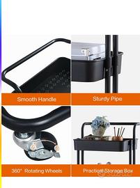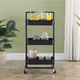 3 Livelli Carrello Cucina Salvaspazio, Scaffale Plastica, Carrello Di Servizio con 2 Freni, Multifunzionale Carrello Portaoggetti, per Ufficio, Soggiorno, Contenitore Mobile Con Ruote, Nero