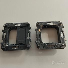 Supporto 2 Moduli per Cassetta 502E 2 Posti (2 pezzi) Placca 2 Moduli, Finitura Colore Nero (2 pezzi) Falso polo - 1 modulo Colore Nero (1 pezzo) Prezzo totale per tutti i 5 pezzi.