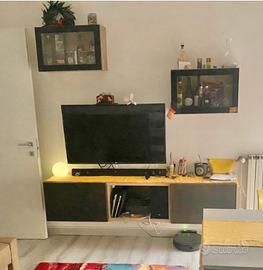 Vendo (causa ristrutturazione ) parete attrezzata/livig con vetrinette e base ampia in ottime condizioni . Puo essere sospeso come da foto oppure appoggiato a terra come base.