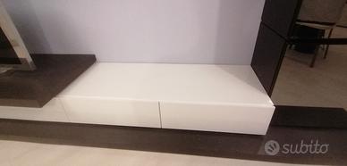 Living Pianca Lunghezza 340 cm Rovere grigio Laccato bianco lucido Vetri stop sol Nuovo mai usato solo expo
