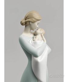 Splendido oggetto di design. Nuovo con scatola originale, mai tirato fuori dalla scatola. No spedizione, solo ritiro a mano a Verona. Info sull’oggetto: Abbraccio materno è una figura in porcellana brillante dipinta a mano dall'artista Alfredo Llorens. L'articolo fa parte della collezione Famiglia di Lladrò. Gli artisti di Lladrò hanno fermato nel tempo, con le loro sculture, i momenti più cari del vivere quotidiano in famiglia, momenti pieni di tenerezza e amore, momenti da ricordare. I pezzi di Lladrò sono realizzati a mano a Valencia, nell'unica fabbrica al mondo dell'azienda. Ogni pezzo è il risultato di un laborioso processo artistico costruito con certosina attenzione, infatti è compito di una squadra di esperti composta da chimici, scultori, incisori e pittori mantenere in vita le antiche tecniche di lavorazione della porcellana. LLadrò plasma nella sua fabbrica fino a 32 diversi tipi di porcellana di altissima qualità, porcellana che è composta da minerali come il caolino, il quarzo e il feldspato. Gli scultori seguono la loro ispirazione, ma utilizzano anche un meticoloso processo di ricerca e di documentazione, e creano in plastilina o in creta un modello dal quale poi comincerà lo sviluppo artistico della scultura finale. Dal modello si ricavano gli stampi, anche per i frammenti più minuti della scultura, che verranno poi riempiti di porcellana liquida. Quando la porcellana si sarà solidificata e dopo aver unito tra loro tutti i frammenti della scultura si procede alla sua decorazione a mano, sono oltre 4000 i colori utilizzati. Il processo termina con la cottura in una fornace fino a 1300° per circa 24 ore. La porcellana si vetrifica e i colori diventano brillanti.