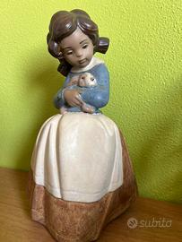 LLADRÓ“Tenderness" Girl with Bunny Rabbit Senza scatola Fuori produzione numerata Scultore: Salvador Debón. Gres porcellanato con finitura opaca Fuori produzione Numerata È stata lanciata nel 1978 ed è uscita di produzione (ritirata) tra il 2000 e il 2001