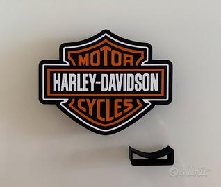 Logo Harley-Davidson da appendere o come soprammobile (supporto incluso). Possibilità di inserire striscia led all’interno per reteoilluminarlo. Dimensioni 25x20 cm