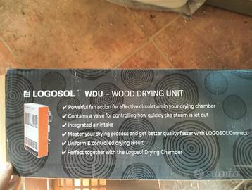 Unità di essicazione per legno. Unità di essiccazione Sauno potenziata e migliorata da 2 kW, con potente ventola per la circolazione dell'aria nella camera di essiccazione. L'unità è inoltre dotata di una presa d'aria integrata che aspira l'aria nell'essiccatoio grazie alla depressione creata dal flusso d'aria. L'aria esterna secca e fredda viene miscelata con l'aria calda e umida nell'unità di essiccazione Sauno prima di raggiungere il legno nella camera. Queste caratteristiche garantiscono un risultato di essiccazione più uniforme e controllato.