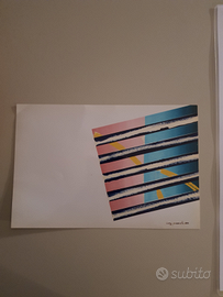 Lorenzo Piemonti "Cromoplastico" anno 2010. Acrilici e collage su cartoncino, misure 35x50 cm. Firmato e datato al fronte in basso a destra, autentica dell'autore su fotografia, certificato di garanzia galleria d'arte, Archivio Lorenzo Piemonti, in cornice come da foto.