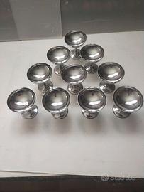 Vendo in blocco lotto composto da 10 calici in metallo per champagne, cocktails, dessert in metallo, aventi un diametro ed un'altezza entrambi di cm. 9, in buono stato di conservazione. Spedizione con un unico pacco bene imballato al fine di preservare il contenuto.